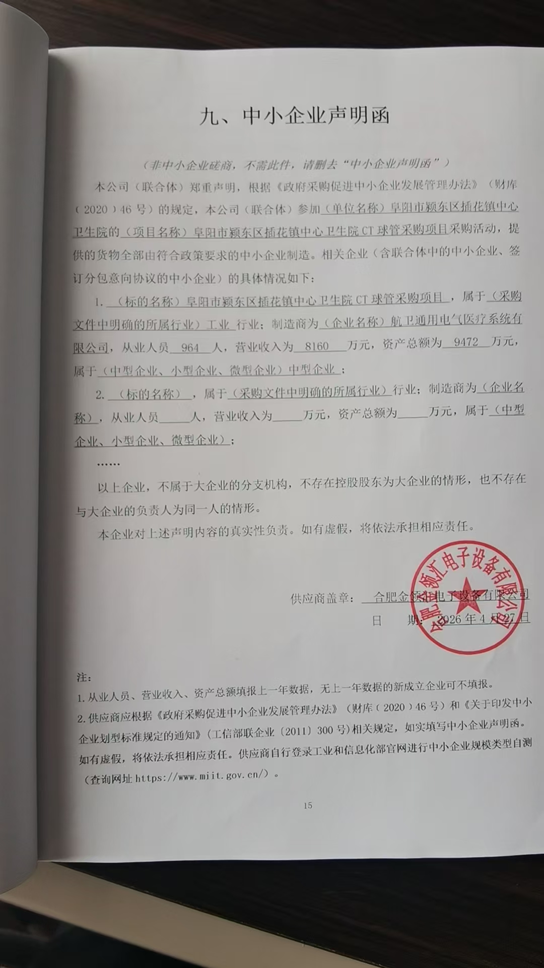 二、项目名称:阜阳市颍东区插花镇中心卫生院CT球管采购项目