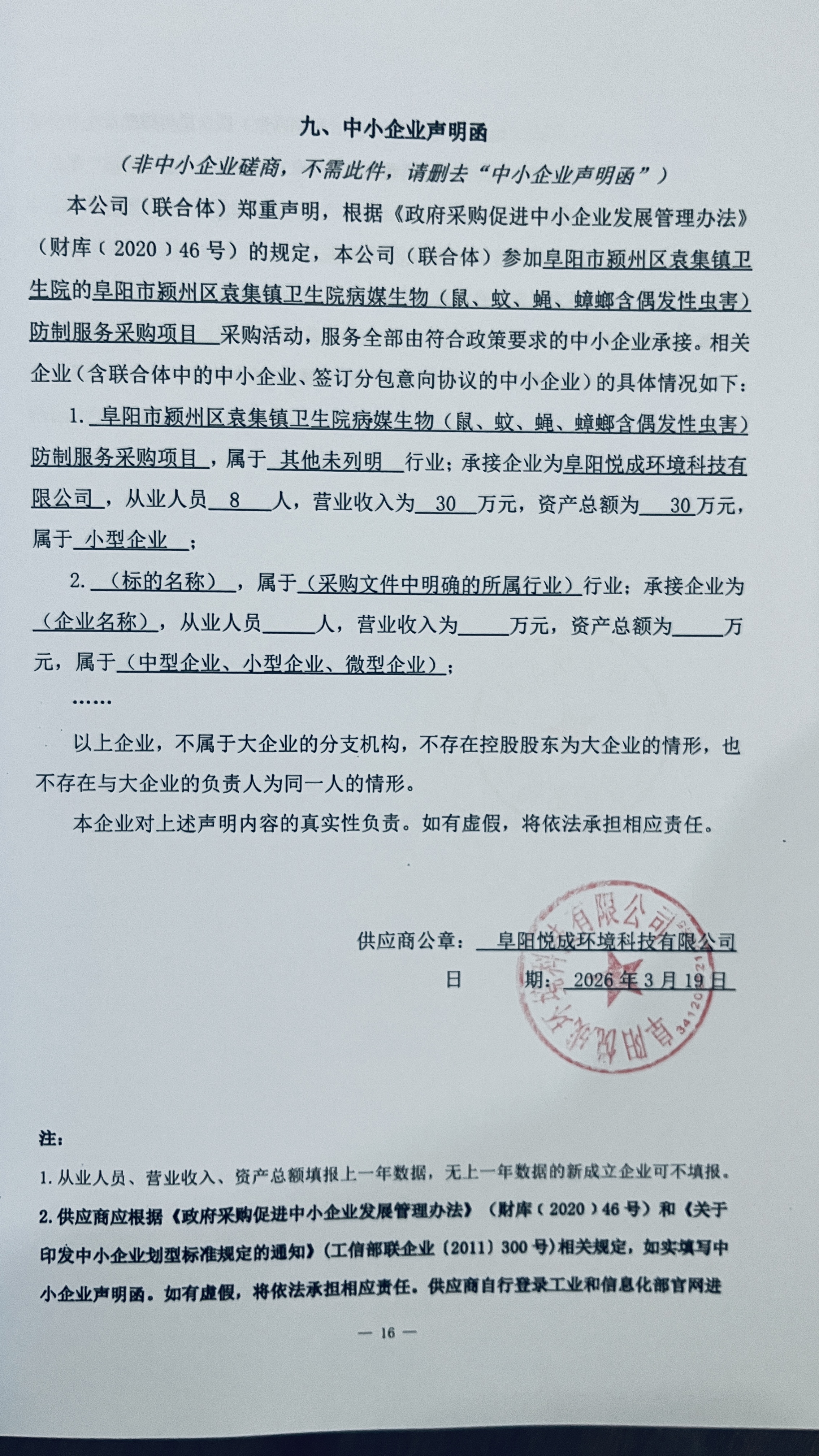 供应商名称:阜阳悦成环境科技有限公司